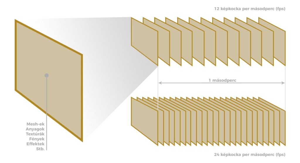 Egyszerűen fogalmazva ez az a lépéssorozat, amely során az Unreal Engine a 3D jelenetet kétdimenziós képpé alakítja, és ezt minden egyes képkockánál (frame) újra és újra megteszi. Amikor a program nézetablakában navigálunk a virtuális jelentünkön belül, tulajdonképpen folyamatosan állóképek sorozatát rendereli ki a motor, másodpercenként többször is, így lesz a statikus képekből mozgókép.